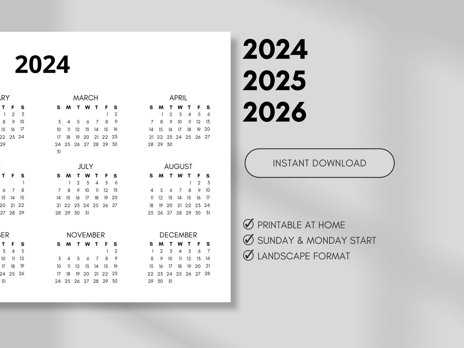 Calendar Printable 2024/2025/2026 Printable Yearly Planner Calendars