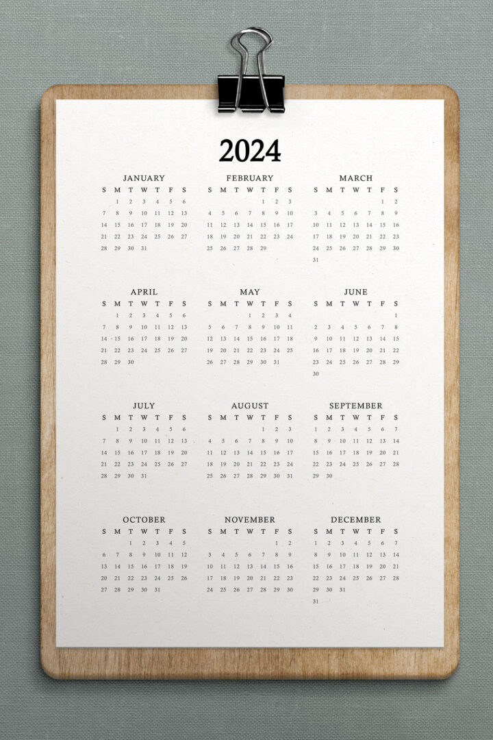 2024 Yearly Calendar Printable Classic 2024 Calendar Vertical Calendar