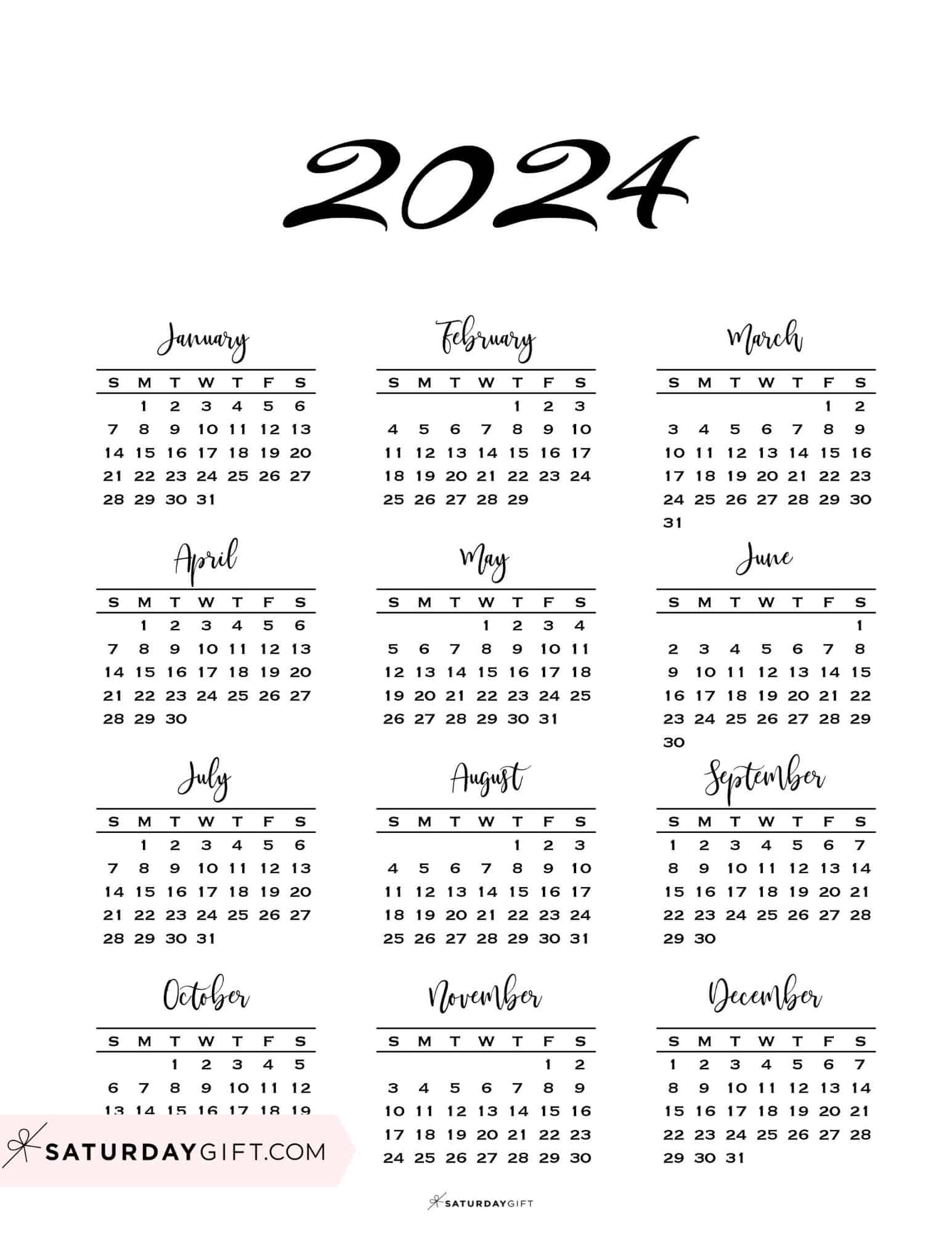 2024 Calendar Printable Cute Free 2024 Yearly Calendar Templates in