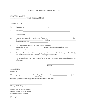 Affidavit Re: Property Description Doc Template pdfFiller