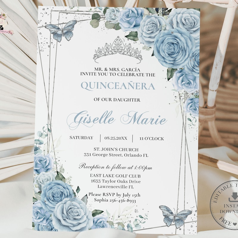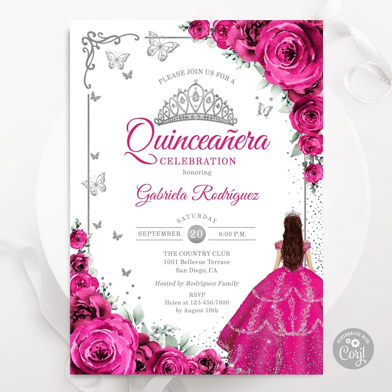 Free Elegant Quinceañera Invitation Template to Edit Online