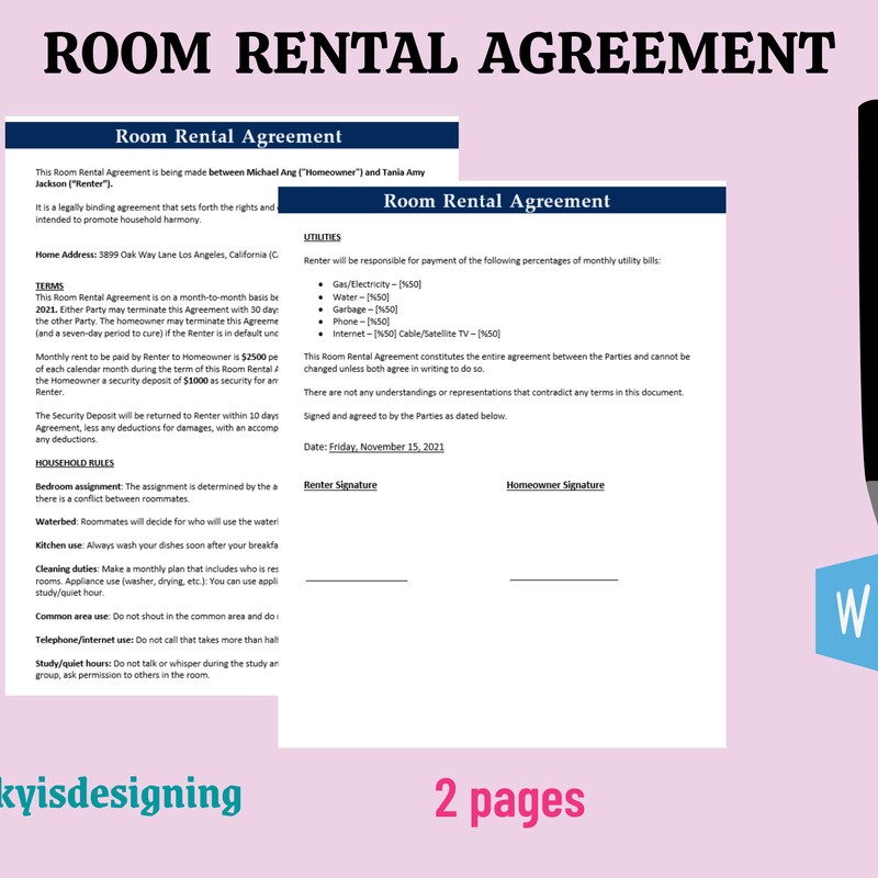 Room Rental Agreement Etsy
