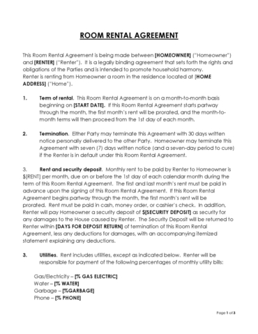 Room Rental Agreement Template PDF Renting Private Law