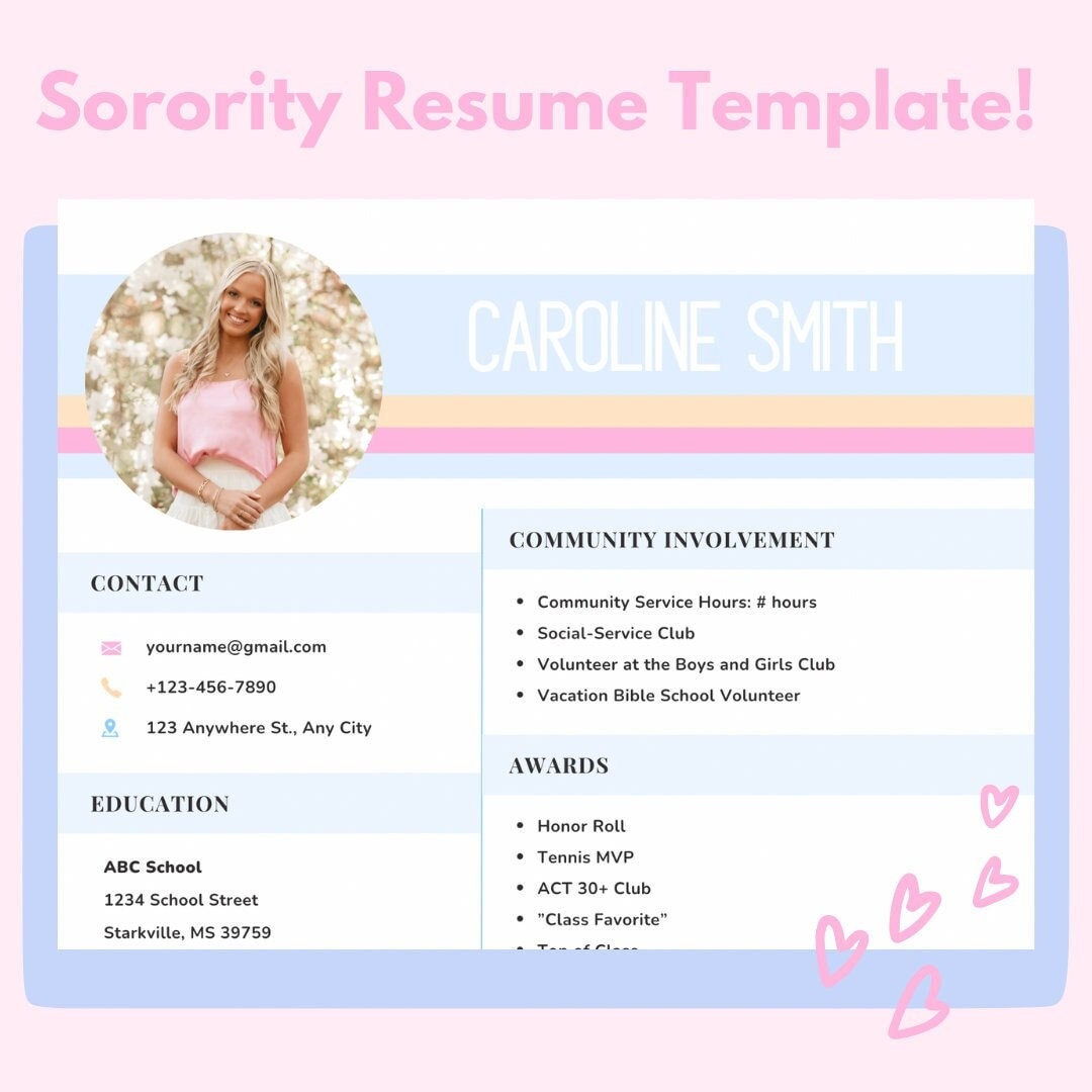 Sorority Resume Template Sorority Rush Resume Recruitment Etsy