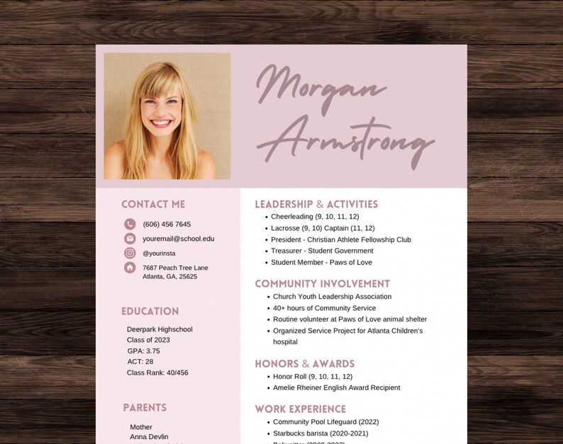 Sorority Resume Template With Photo Editable Floral Rush Resume