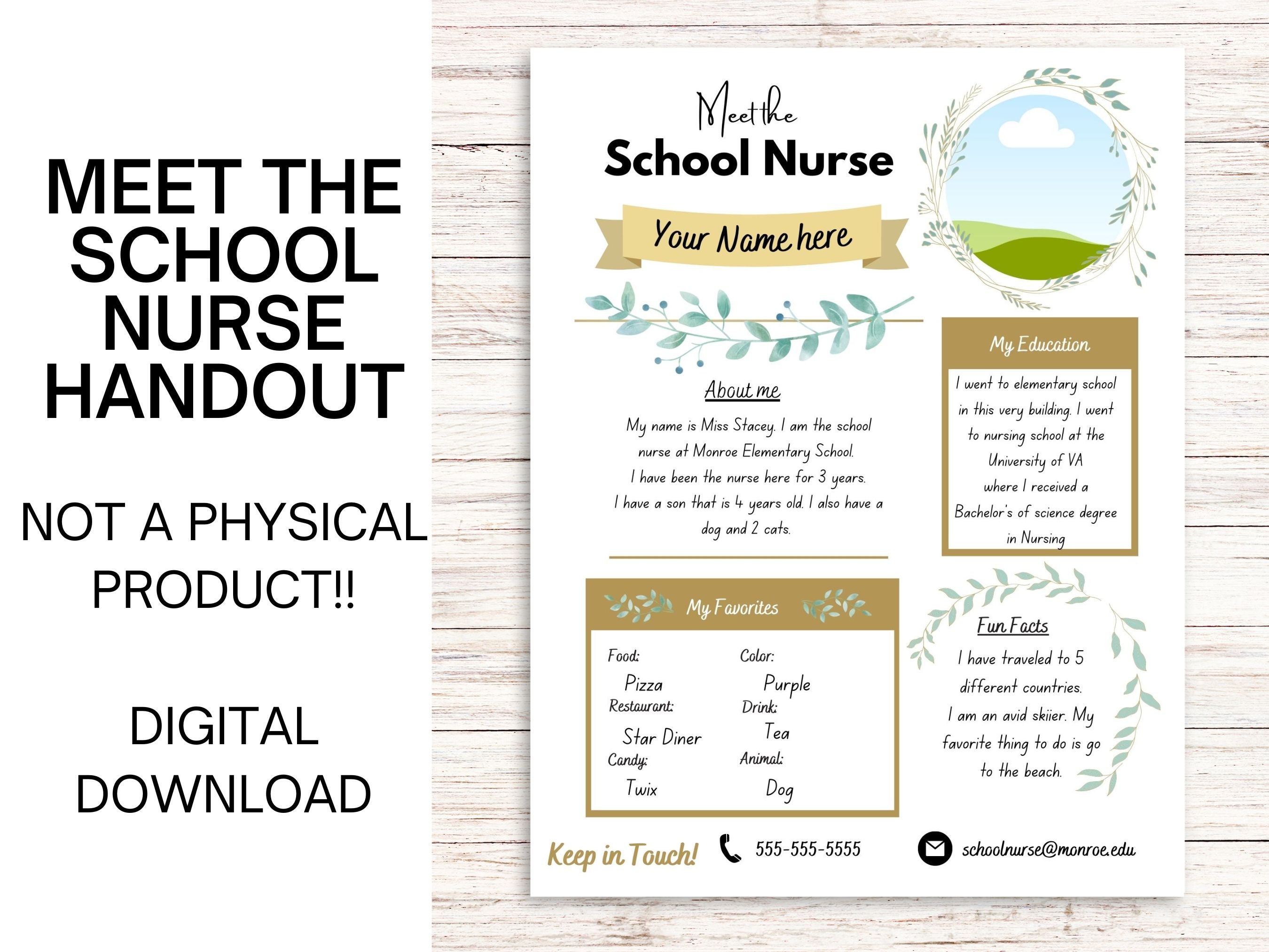 EDITABLE Meet the School Nurse Template Printable Back to School Nurse