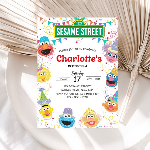 (Free Editable PDF) Super Cute Sesame Street Birthday Invi in 2024