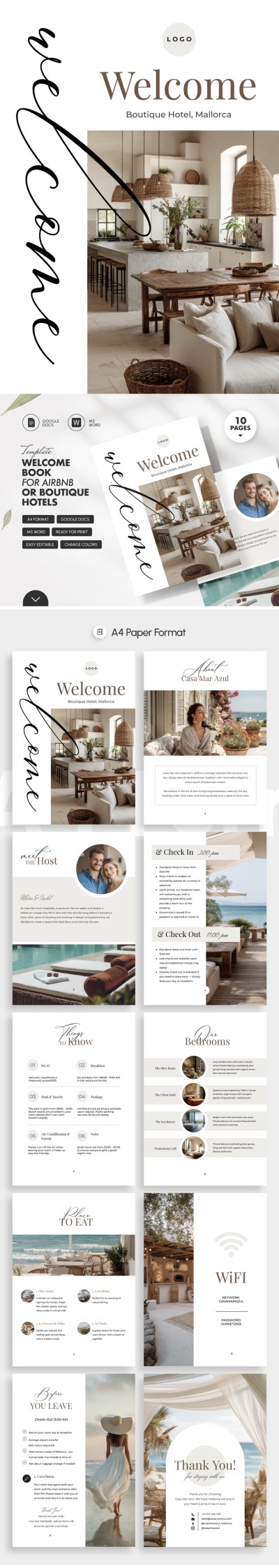 Free Welcome Book Template for Airbnb or Boutique Hotels Template in