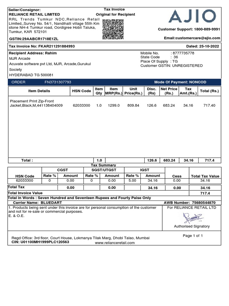 Custom T Shirt Invoice Template With Shipping PDF