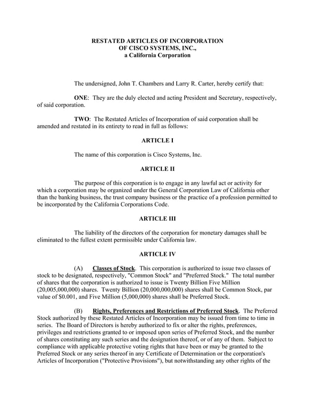 cisco systems Articles of Incorporation PDF