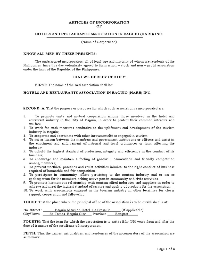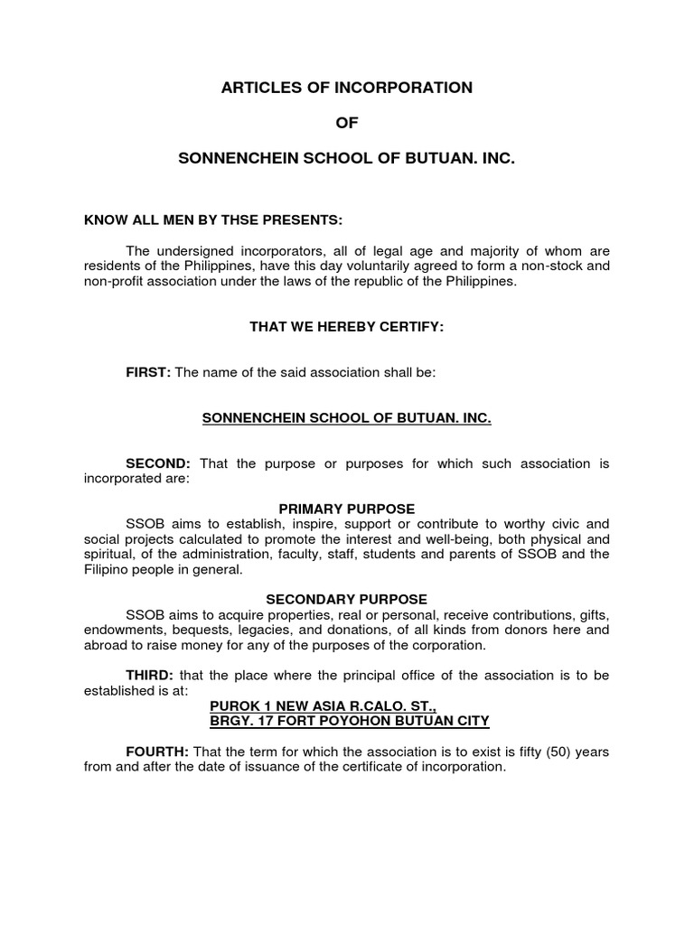 Articles of Incorporation PDF Social Institutions Social Science