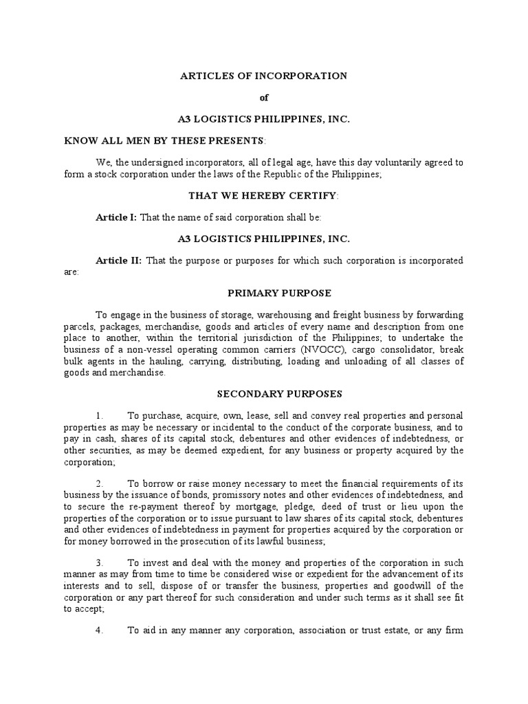 Articles of Incorporation 2 PDF Philippines Corporations