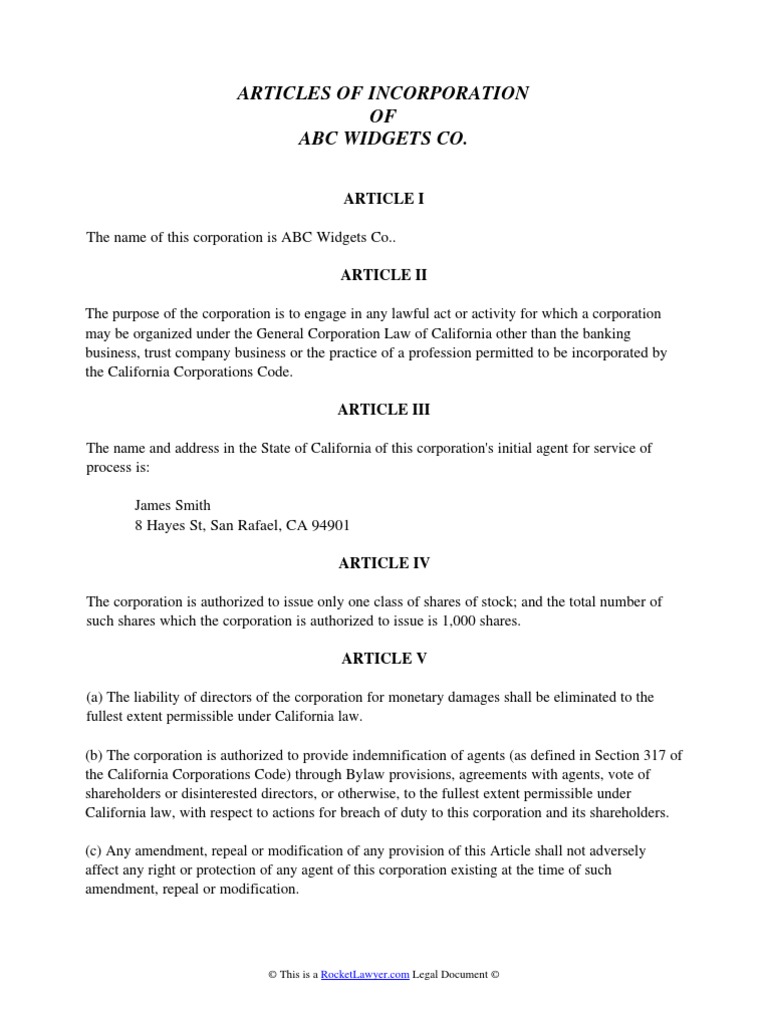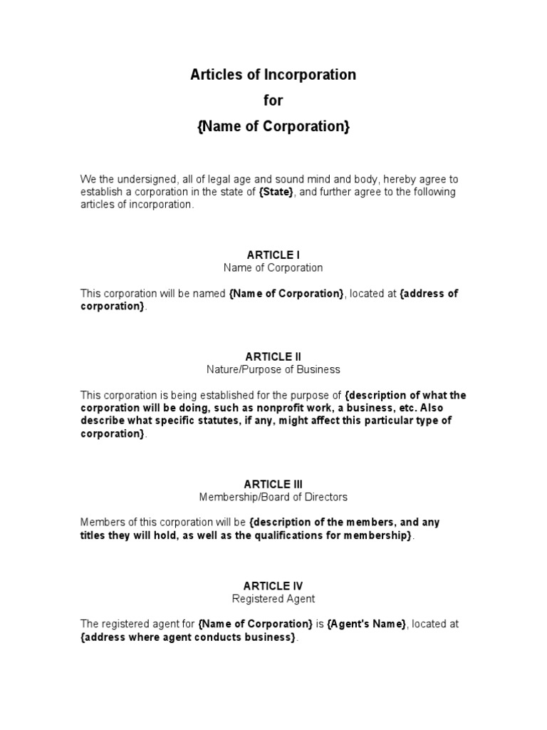 Free Template For Articles Of Incorporation