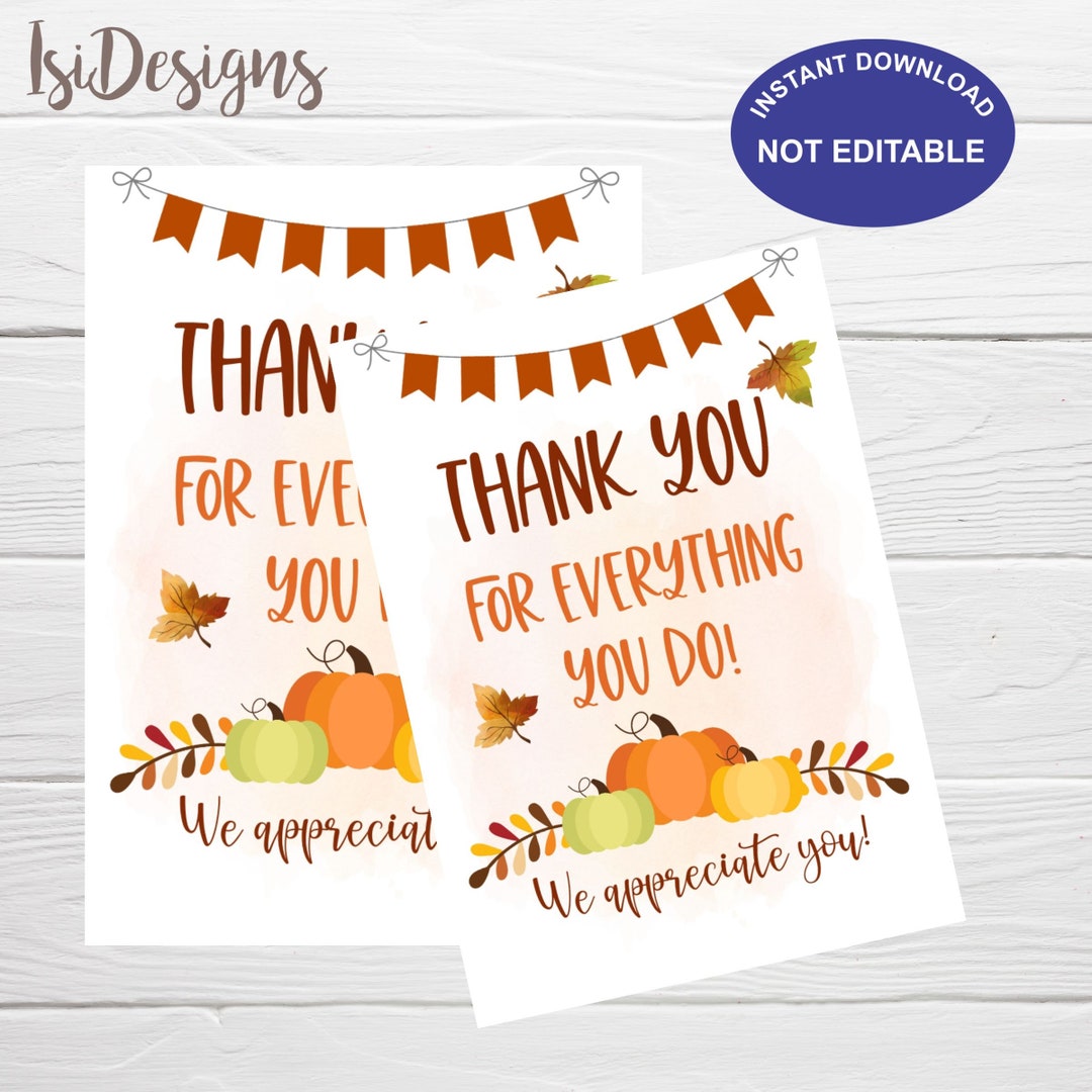 Fall Appreciation Thank You Tags Instant Download Teacher PTO/PTA