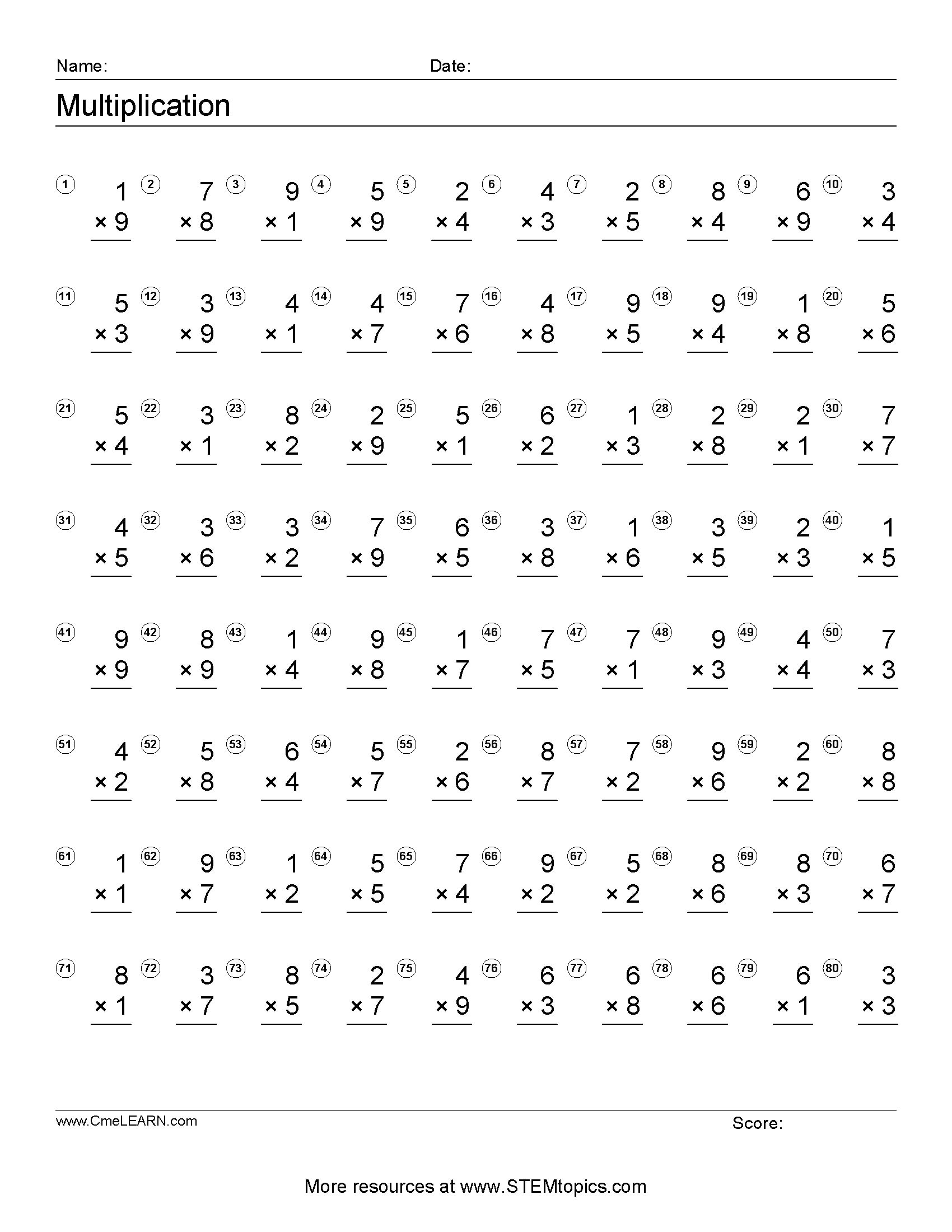 Free Printable Minute Math Multiplication Worksheets Albert Gutierrez