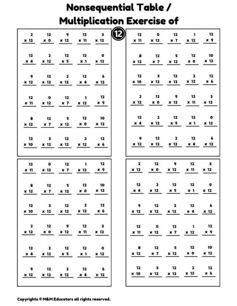 Free Multiplication Worksheets 1 12 Paper Trail Design Worksheets