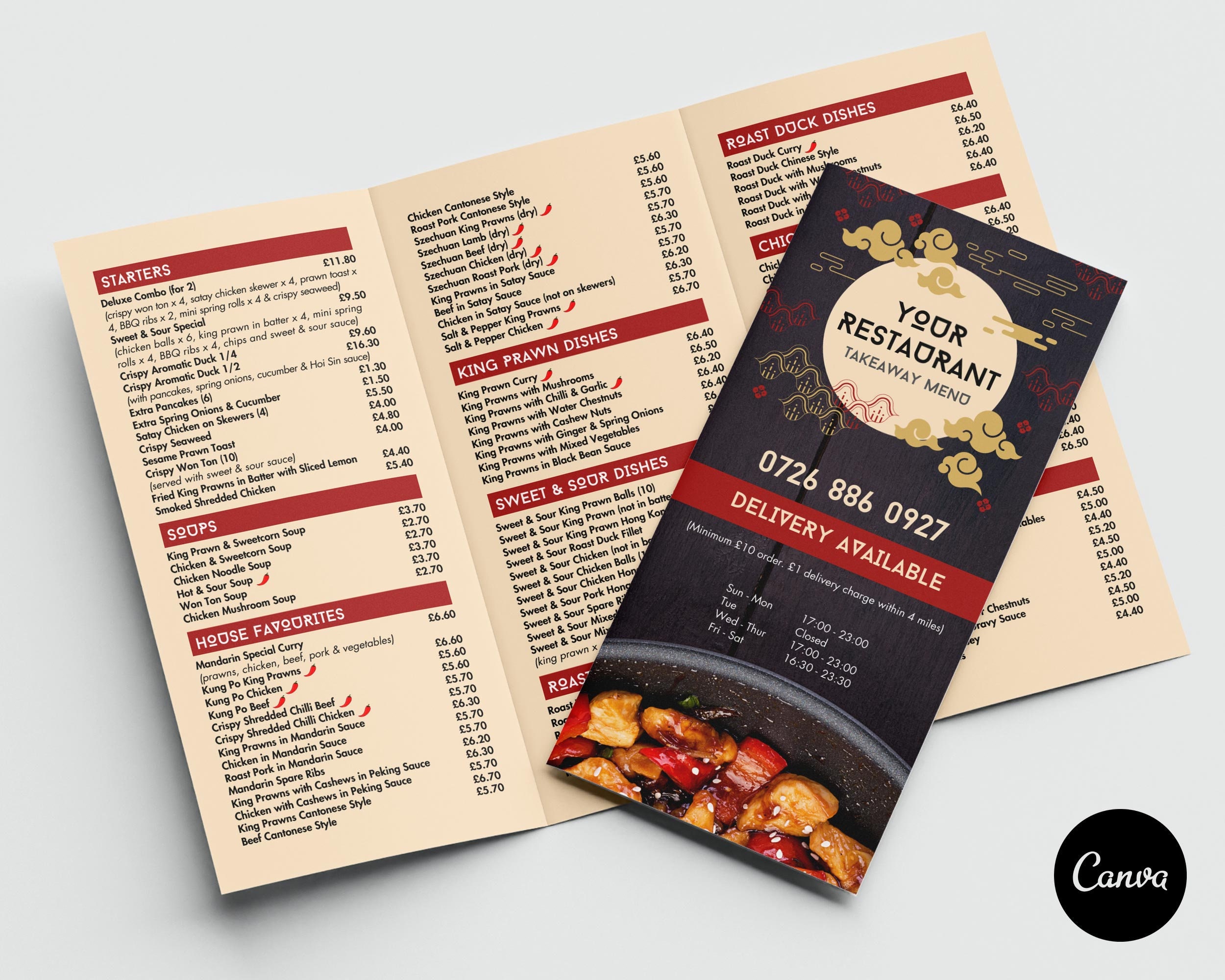 Canva Chinese Takeaway Menu // Takeaway Tri Fold Menu Template // Canva