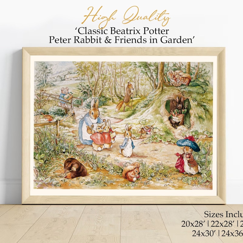 Explore the charm of inspired Beatrix Potter illustrations featuring