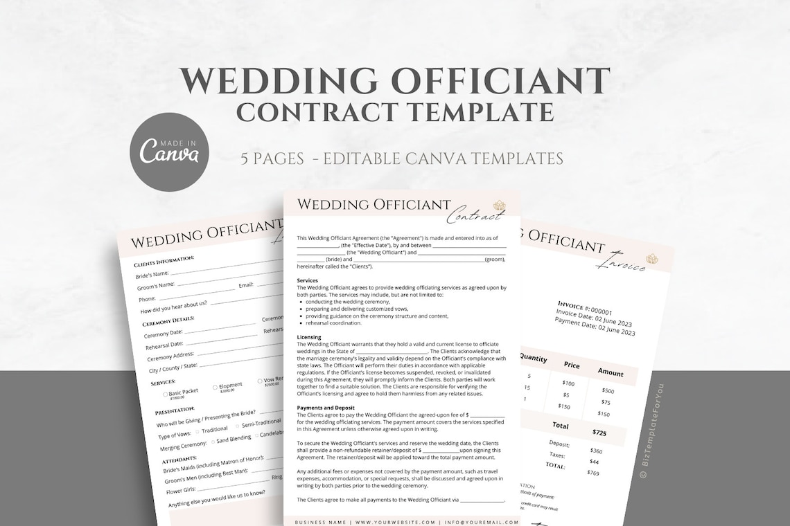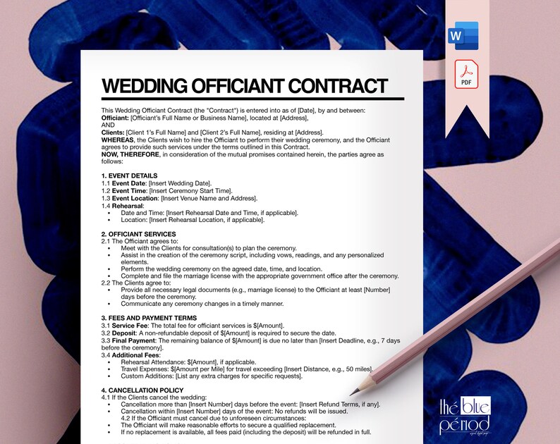 Wedding Officiant Contract Template Editable Marriage Ceremony Terms