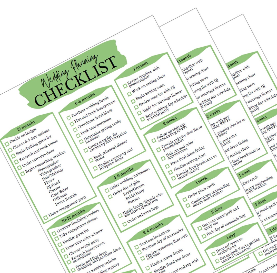 Wedding Planning Checklist Printable Digital File Download Etsy