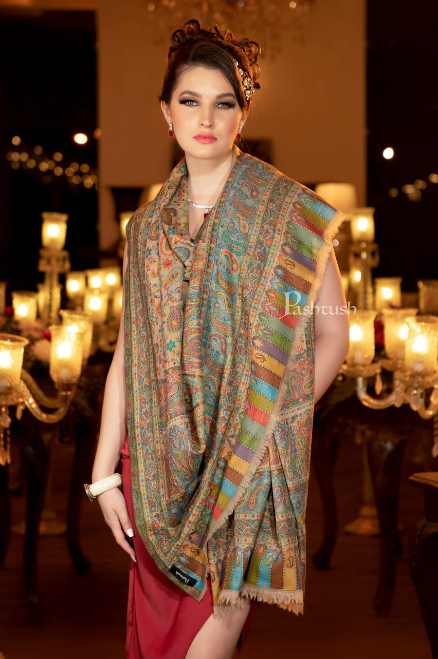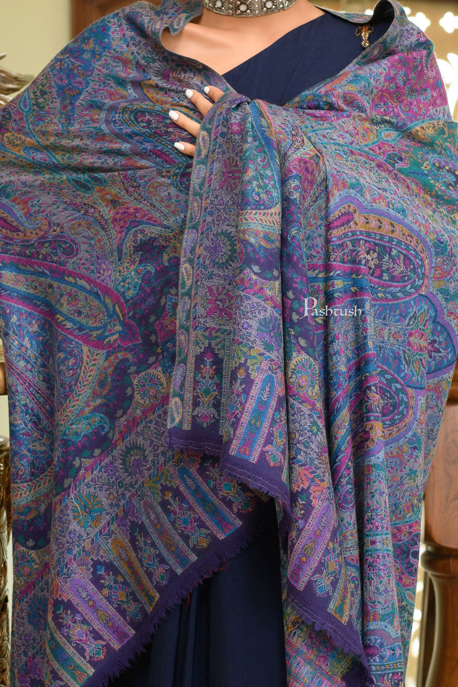 Pashtush Womens 100% Pure Wool With Woolmark Certificate Shawl Kalamk