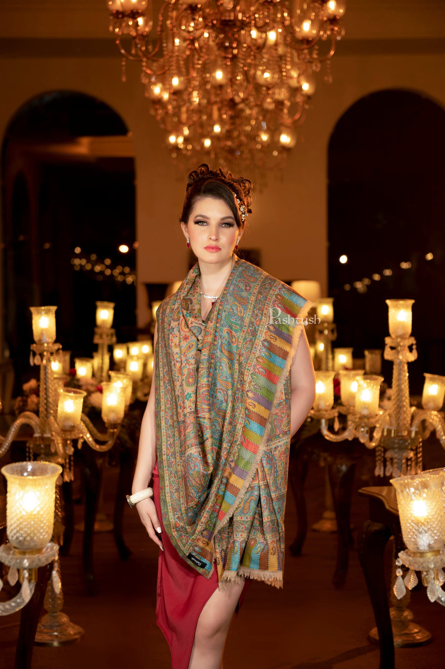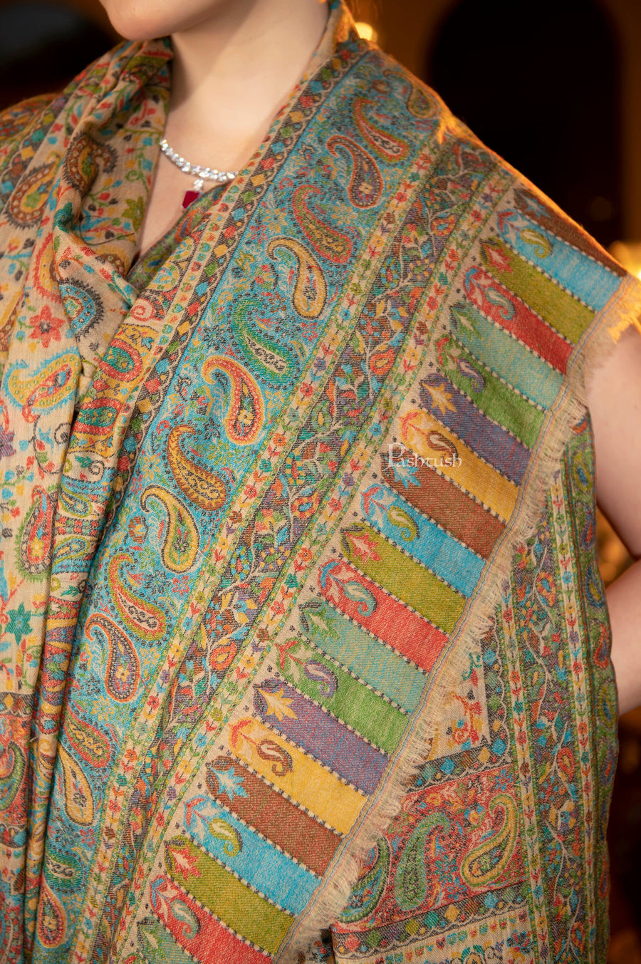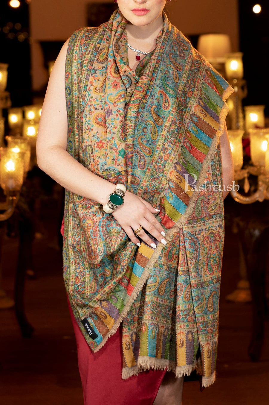Pashtush Womens Shawl Pure Wool With Woolmark Certificate Woven Kal