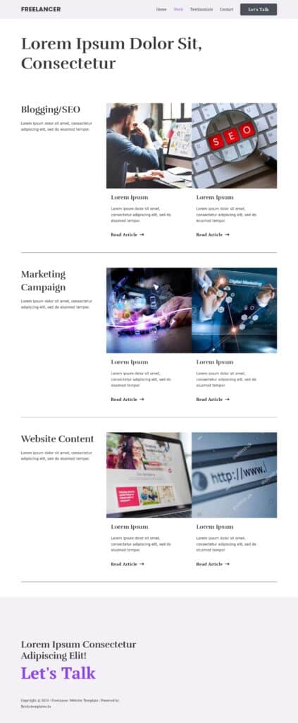 Work Freelancer Website Template