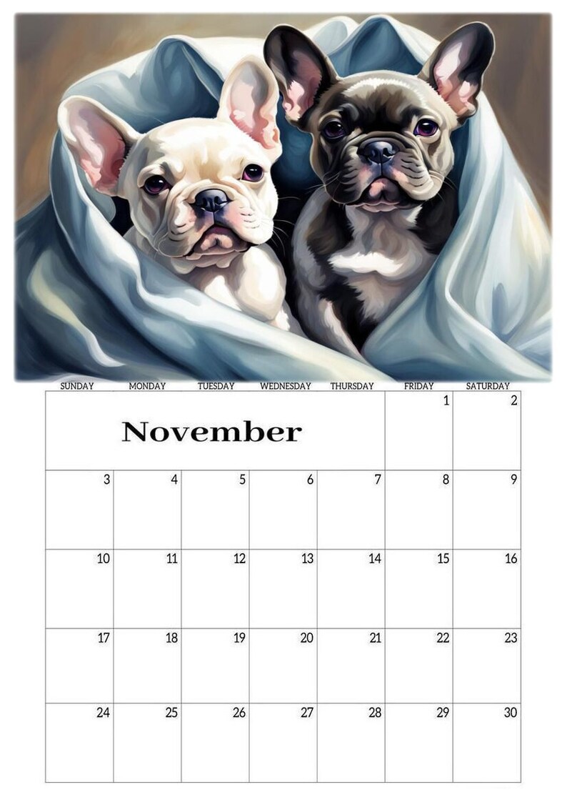 French Bulldog Calendar 2024 Frenchie Calendar Beautiful Handmade
