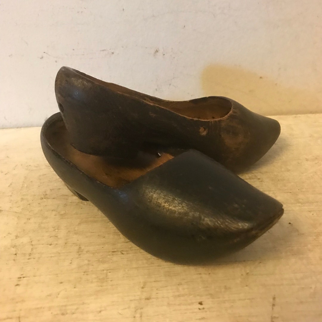 Antique French Wooden Clogs farmhouse shoes 19th cen Gem