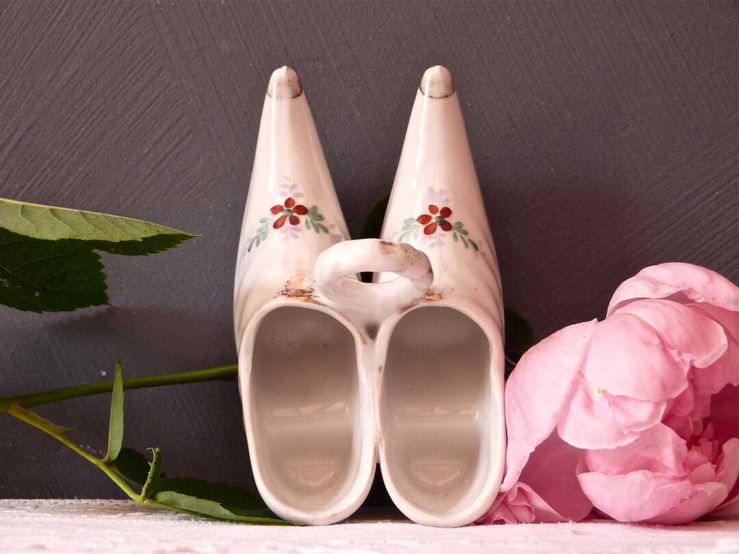 Vintage French Clog Delft Blue style Clog Wall Hanging Locking Coin