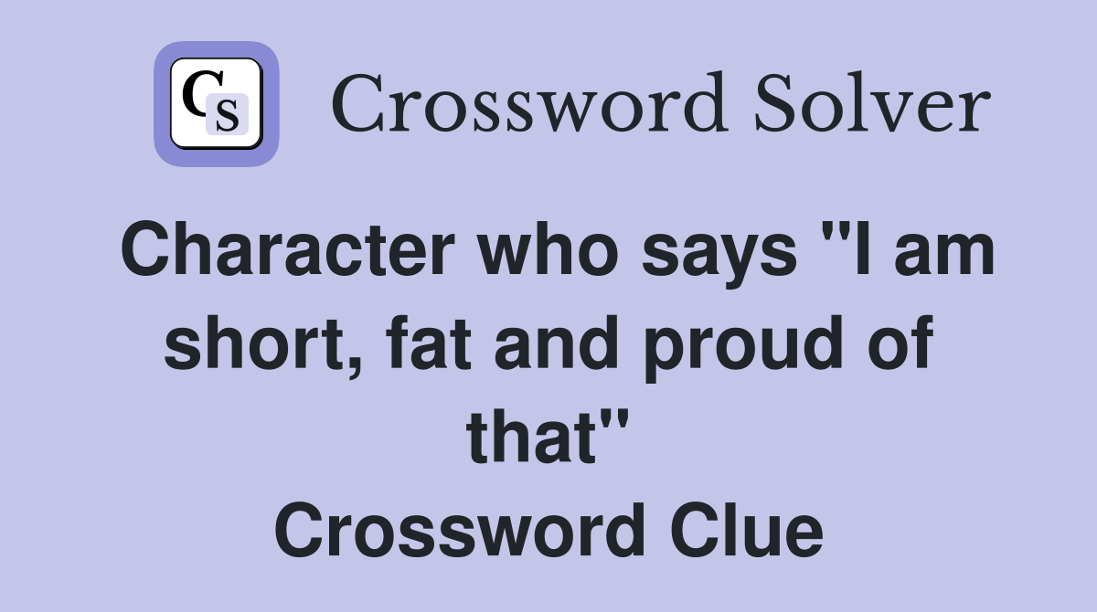 Character who says quot I am short fat and proud of that quot Crossword Clue