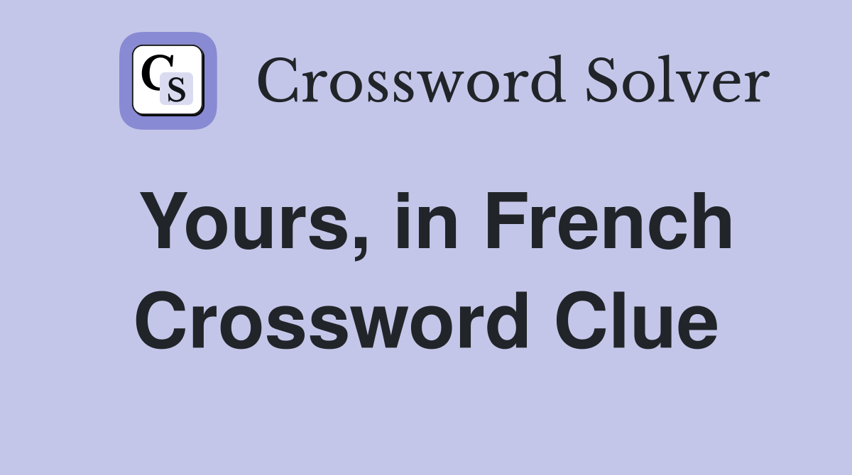 A (French for yours ) Crossword Clue Answers Crossword Solver