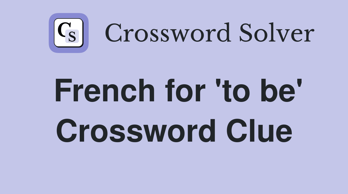 French for to be Crossword Clue Answers Crossword Solver