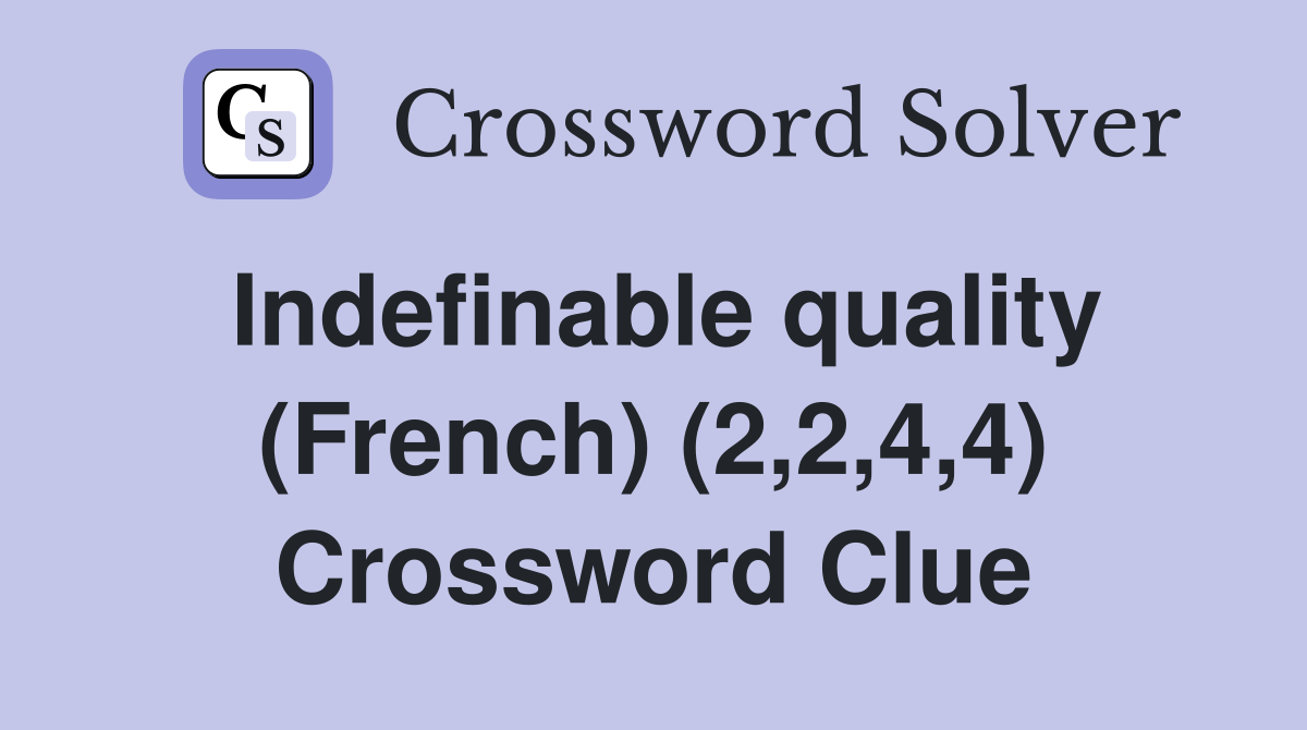 Indefinable quality (French) (2 2 4 4) Crossword Clue Answers