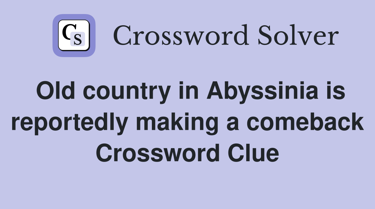 Old country in Abyssinia is reportedly making a comeback Crossword