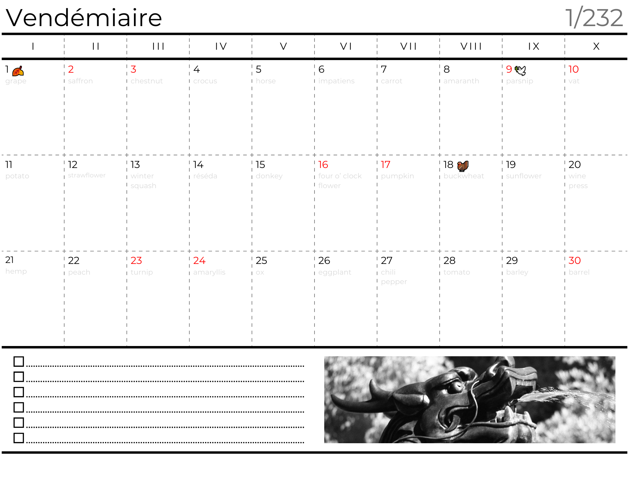 French Republican Calendar (Revised Canadian Edition Year 232)