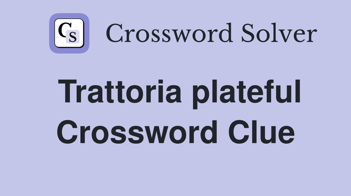 Trattoria plateful Crossword Clue Answers Crossword Solver