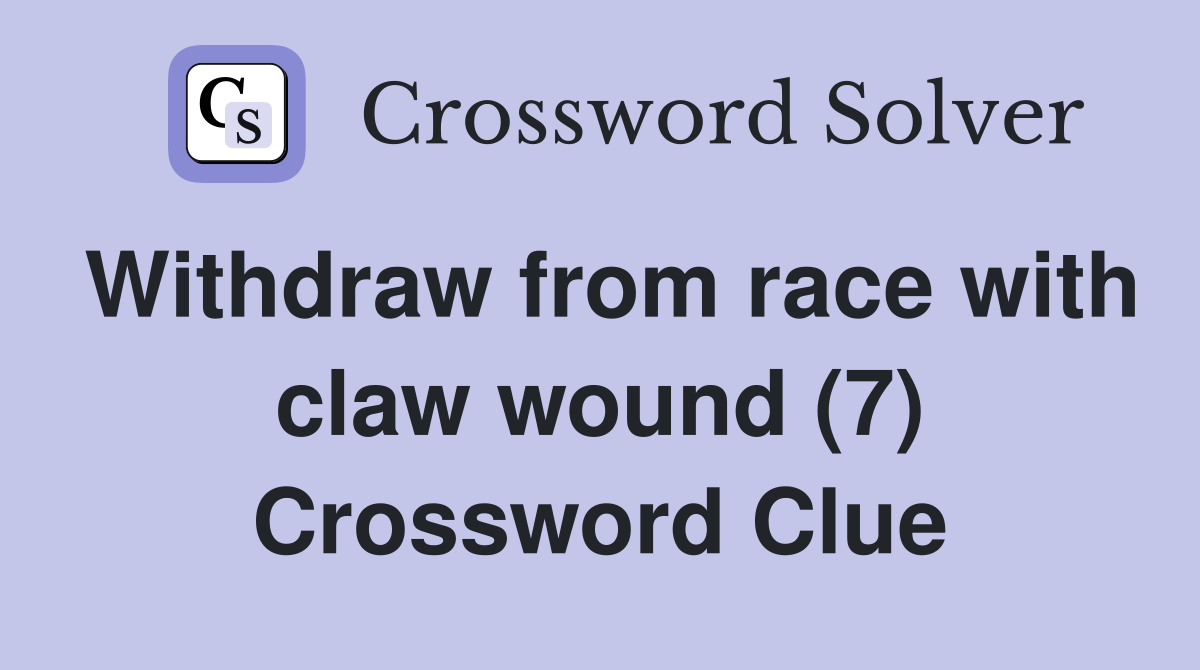 Withdraw from race with claw wound (7) Crossword Clue Answers