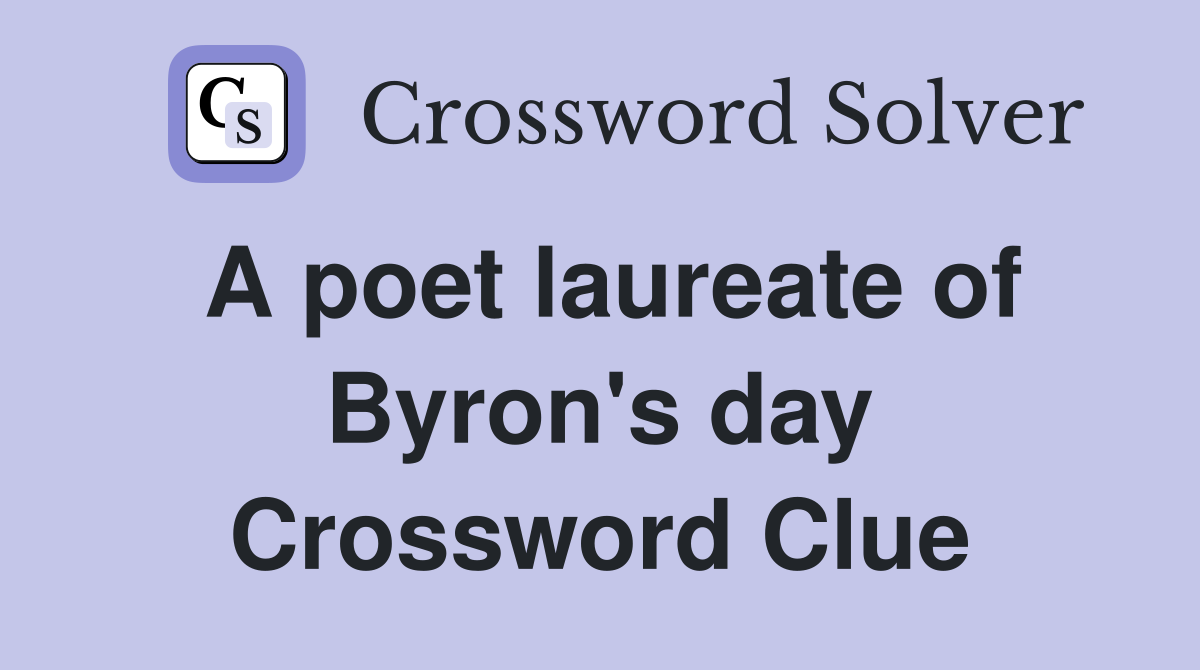 A poet laureate of Byron #39 s day Crossword Clue Answers Crossword Solver