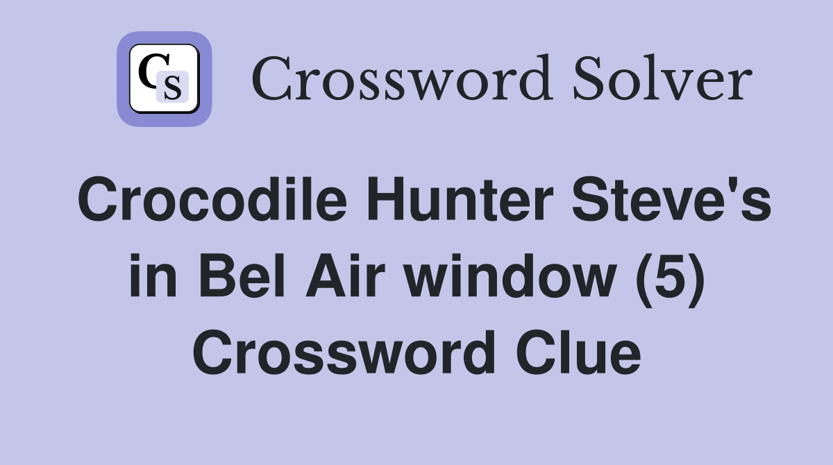 Crocodile Hunter Steve #39 s in Bel Air window (5) Crossword Clue Answers