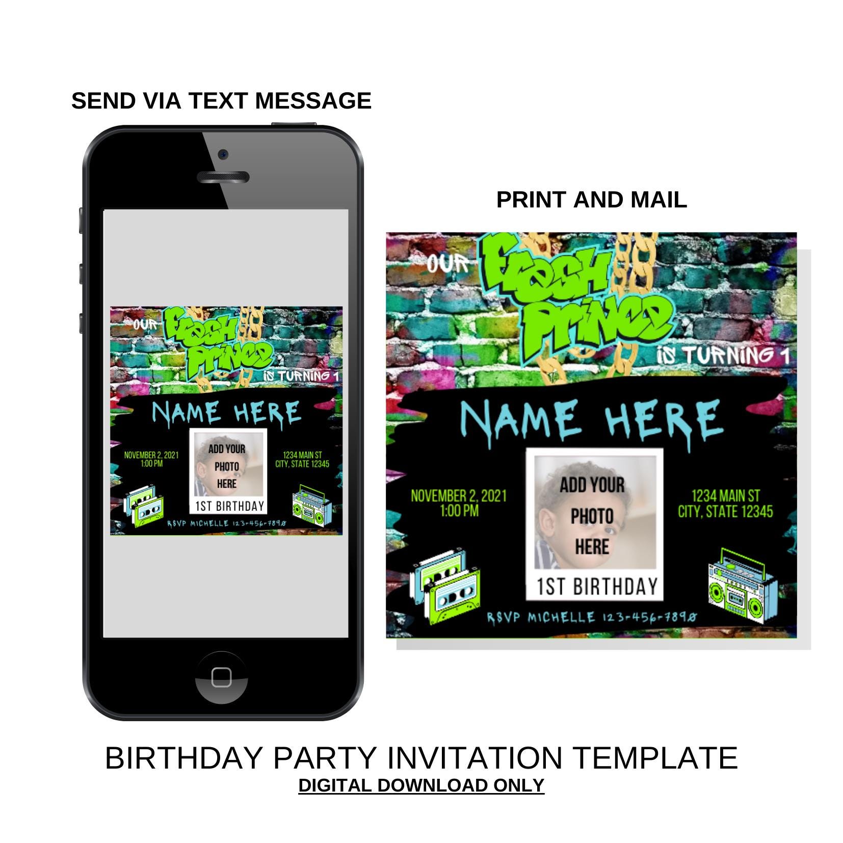 Fresh Prince Fresh One Two Fresh Birthday Party Digital Invitation