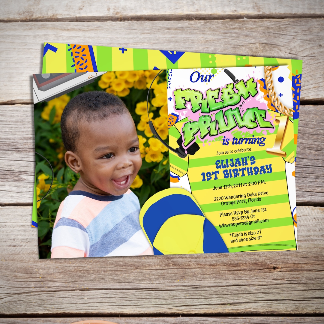 Fresh Prince 1st Birthday Invitation With Photo 90s Party Invite Hip