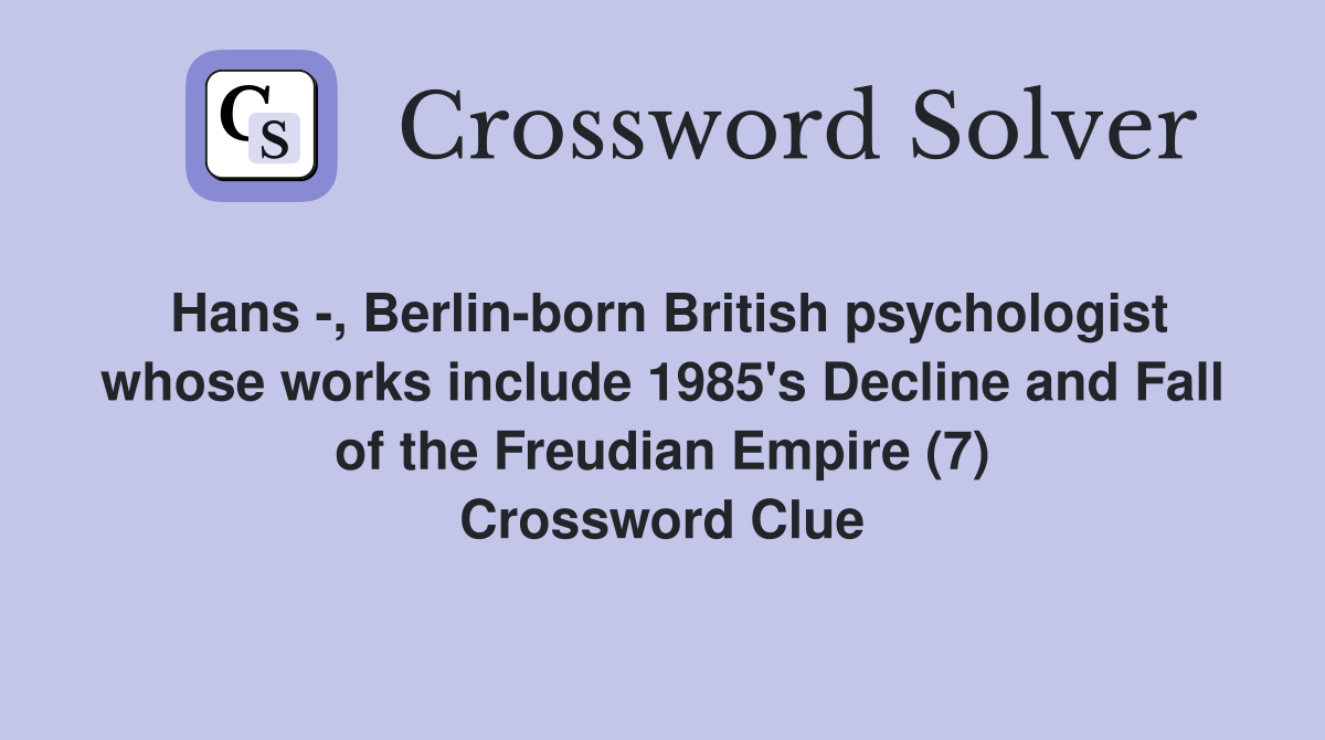 Hans Berlin born British psychologist whose works include 1985 s