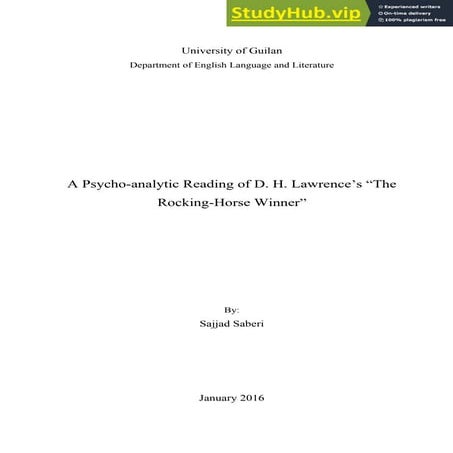 A Psycho Analytic Reading Of D H Lawrence S The Rocking Horse Winner