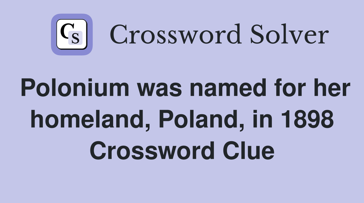 Polonium was named for her homeland Poland in 1898 Crossword Clue