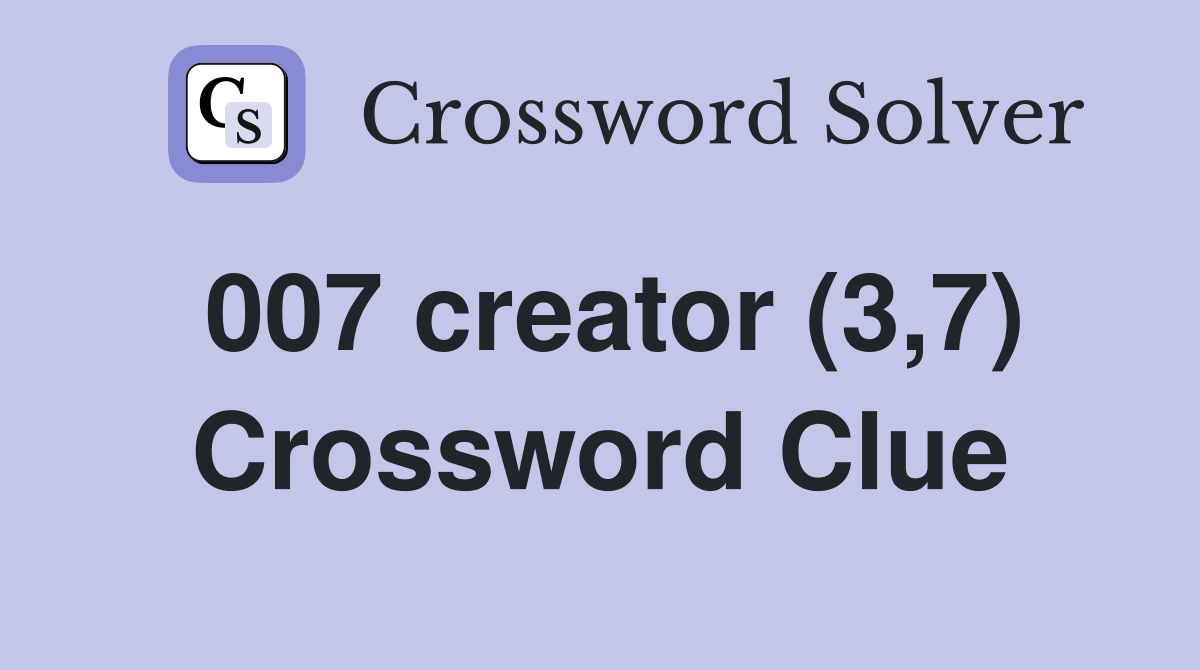 007 creator (3 7) Crossword Clue Answers Crossword Solver