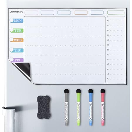 POPRUN Magnetic Weekly Family Planner Fridge Whiteboard Calendar Dry