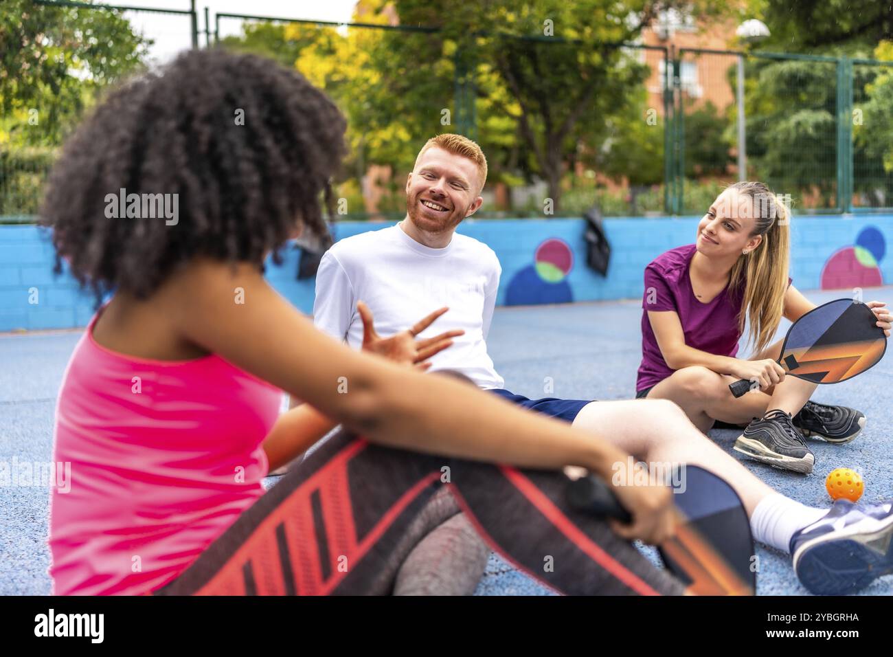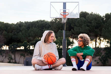Friends Chatting Sitting on the Basketball Court Stock Image Image of