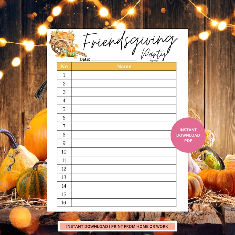 Friendsgiving Potluck Sign up Sheet (PDF Editable Template) Etsy
