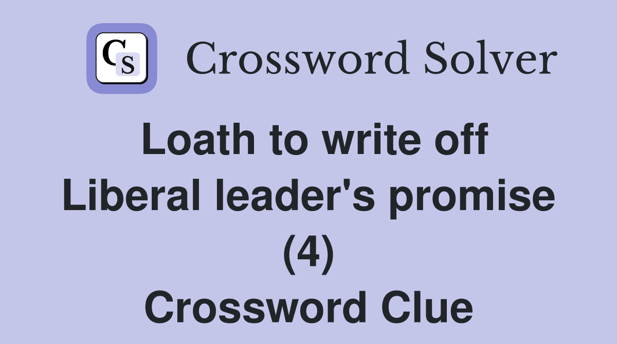 Loath to write off Liberal leader #39 s promise (4) Crossword Clue